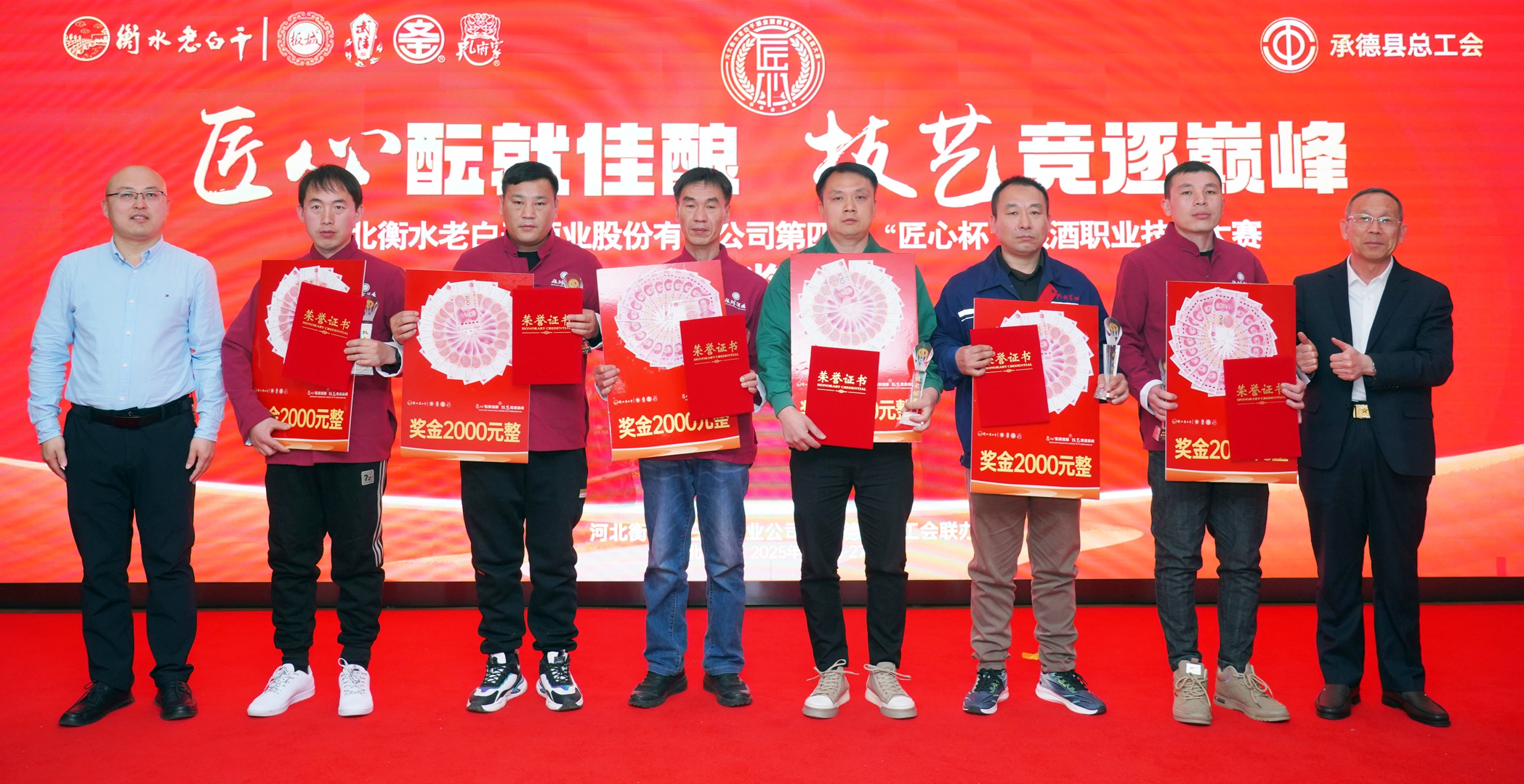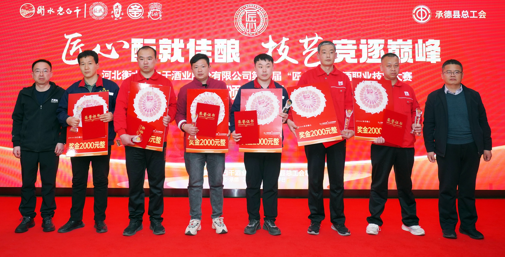 在活動閉幕式上,承德縣總工會黨組書記、常務(wù)副主席溫明忠,衡水老白干酒業(yè)公司副董事長張煜行,板城酒業(yè)黨委書記、總經(jīng)理張春生,衡水老白干酒業(yè)公司工會副主席孔衛(wèi)東,板城酒業(yè)生產(chǎn)總經(jīng)理趙志剛,文王酒業(yè)生產(chǎn)總經(jīng)理孫偉,孔府家酒業(yè)生產(chǎn)總經(jīng)理顏世昕,武陵酒業(yè)技術(shù)總監(jiān)張福艷,衡水老白干酒業(yè)公司技術(shù)中心副主任王新磊,以及各公司的參賽選手、裁判、領(lǐng)隊及相關(guān)部門負(fù)責(zé)人出席活動。
